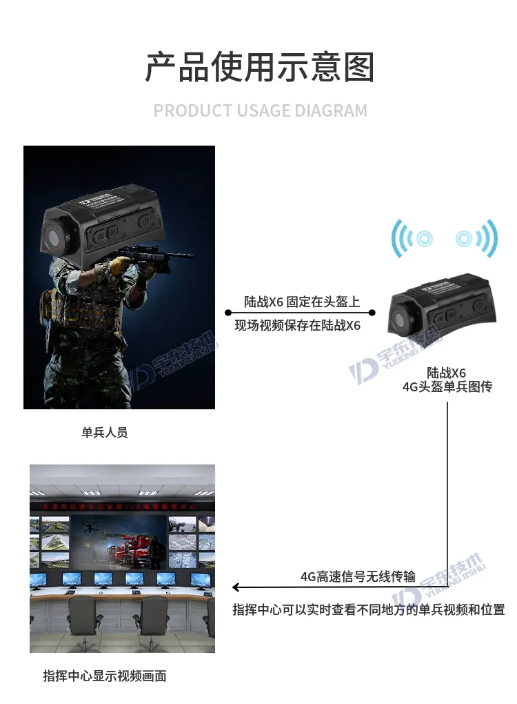 陸戰(zhàn)X6 4G戰(zhàn)術頭盔單兵無線圖傳是針對武警,特警,移動執(zhí)法取證、行政監(jiān)管等單人便攜式監(jiān)控需求應用場景開發(fā)的專用設備,該產品采用高速處理器和嵌入式Linux操作系統(tǒng),集超低照度彩色攝像機、音頻、4G和Wi-Fi無線通訊模塊、北斗、存儲、報警等模塊,配置高清夜視攝像頭及無線藍牙耳機。設備可通過4G、Wi-Fi無線網(wǎng)絡進行實時視音頻信息傳輸、語音對講等功能;協(xié)同后端功能完善的監(jiān)控調度指揮平臺系統(tǒng)實現(xiàn)針對戶外移動式個體的遠程調度指揮功能。