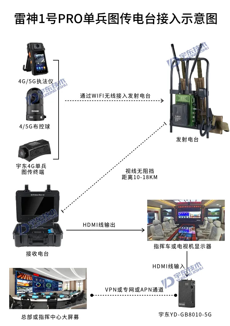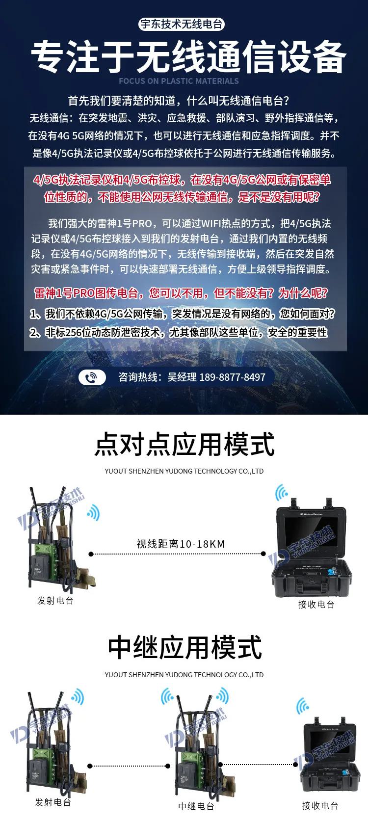 宇東技術(shù)雷神1號(hào)PRO背負(fù)式高清單兵無線圖傳電臺(tái),是公司針對(duì)應(yīng)急救援指揮、部隊(duì)拉練演習(xí)、公安、反恐作戰(zhàn)、消防救援、邊防執(zhí)勤、海警海關(guān)巡檢、森林消防等,在突發(fā)重大事件,斷網(wǎng)斷電,通信中斷的情況下,現(xiàn)場工作人員通過宇東雷神1號(hào)PRO單兵無線圖傳電臺(tái),可以和指揮部雙向語音通話對(duì)講,把現(xiàn)場采集的數(shù)據(jù)實(shí)時(shí)無線傳輸?shù)街笓]車/臨時(shí)指揮部大屏幕,讓指揮部領(lǐng)導(dǎo)對(duì)現(xiàn)場情況一目了然,節(jié)省了到達(dá)現(xiàn)場的時(shí)間,可快速做緊急指揮調(diào)度,最大限度的減少突發(fā)事件帶來的各種損失。